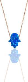 925 ayar gümüş rose fatma ana eli mavi opal taşlı kolye . Zincir Uzunluk:40+4 cm uzatmalı Uç Boyut:13x11 mm