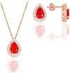 925 ayar gümüş rose kırmızı zirkon taşlı pırlanta modeli damla ikili set.Montür Boyutu En:8.7 mm Boy:11,6 mm Zincir Uzunluk:45 cm