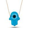 Gümüş Rose Mavi Nazarlı Cam Fatma Ana Eli Kadın Kolye