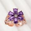 Gümüş Rose Ayarlanabilen Mor Sevgi Çiçeği Kadın Yüzük