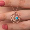 Gümüş Rose Opal Mavi Taşlı Ay Güneş Kadın Kolye