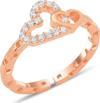 925 ayar gümüş rose zirkon taşlı alttan ayarlanabilir birbirine bağlı kalpler yüzük. Kalp Boyut:8 mm