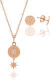 925 ayar gümüş rose zirkon taşlı kuzey yıldızı kolye ve küpe seti.. Zincir Uzunluk:45 cm Uç Boyut:34x14 mm Küpe Boyut:9,70
