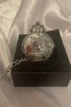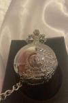 Gümüş Saat Köstekli Saat Trenyolu Tren Kabartmalı Pilli