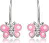 Gümüş Sallantılı Pembe Kelebek Çocuk Küpesi