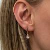 Özel günlerde verilecek hediyeler arasında olan çiçek, bu kez gümüş küpe ile anlam buldu. En kaliteli, en parlak, en ışıltılı taşlarla hazırlanmış gümüş bayan küpe, sevgisini bir kez daha anlatmak isteyenleri, Zihnin duruluğunu ve saflığını ifade eden küpe modeli; 925 ayar gümüşten imal edilmiştir. Gümüş üzerine rose kaplama yapılmıştır.Rose kaplama yapılan gümüş küpeler parlaklığını uzun süre muhafaza eder, oksitlenmesi gecikir. Tüm bayan gümüş küpelerde olduğu gibi gümüş damla küpe modeli de el emeği ile üretilmiştir. Üzerinde bulunan taşlar zirkondur. Gümüş ve değerli taşlar nedeniyle belirtilen ortalama ürün ağırlığında ± %10 sapma olabilmektedir.