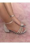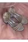 Gümüş Simli Üç Taşlı Kız Çocuk Topuklu Ayakkabı
