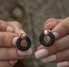 Gümüş Siyah Çok taşlı Daire Bayan Küpe