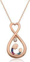 Çocuk ve anne arasındaki sevgiyi temsil eden özel bir tasarımdır. Annenize olan bağlılığınızı belirtmek için alabileceğiniz en uygun hediyelerden biri bu anne çocuk sevgisi kolye olacaktır. Anneniz için tasarlanan bu özel tasarım kalpli anne çocuk kolyesi 925 ayar gümüşten imal edilmiştir. Gümüş üzerine rose altın kaplama yapılmıştır. Rose altın kaplama yapılan gümüş anne çocuk kolye modelleri parlaklığını uzun süre muhafaza eder ve oksitlenmesi gecikir. Kolye üzerinde bulunan taşlar zirkondur. Gümüş olan zincir boyu ortalama 45 cm'dir. Gümüş sonsuz kalpli anne çocuk kolyesi el emeği ile üretilmiştir. Gümüş ve değerli taşlar nedeniyle belirtilen ortalama ürün ağırlığında ± %10 sapma olabilmektedir.