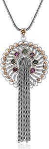 Gümüş Telkari Yakut Zümrüt Renkli Taşlı Kadın Kolye