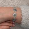 Telkari tekniği, geleneksel bir el sanatıdır ve ince, detaylı işçilikle zarif görünümler oluşturur. Bu, bileklikteki ihtişamı ve şıklığı temsil eder.Gümüş telkari kadın bileklik;doğum günü hediyesi,sevgililer günü hediyesi veya annelere hediye olarak özel günlerde tercih edilebilecek mükemmel bir seçenektir.Gümüş telkari zümrüt taşlı kadın bileklik 925 ayar gümüşten imal edilmiştir.Gümüş üzerine rodyum kaplama yapılmıştır.Rodyum kaplama yapılan kadın bileklik parlaklığını uzun süre muhafaza eder ve oksitlenmesi gecikir.Tüm kadın bilekliklerde olduğu gibi gümüş telkari kadın bileklik de el emeği ile üretilmiştir.Gümüş ve değerli taşlar nedeniyle belirtilen ortalama ürün ağırlığında ± %10 sapma olabilmektedir.