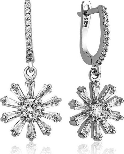 Gümüş Trapez Taşlı Çiçek Bayan Küpe