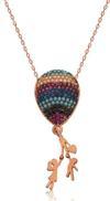 Uçan balon ile mutluluktan havalananları temsil eden gümüş kolye, sevdikleriniz ve mutluluğunu paylaşmak istedikleriniz için tercih edebileceğiniz bir hediye seçeneğidir. 925 ayar rose kaplama gümüş kolye üzeri renkli zirkon ve firuze taşlarla süslenmiştir. Genç aşıkların ve kendisini genç hissedenlerin severek kullanacağı gümüş uçan balon kolyeyi sevdiklerinize armağan ederek onları da sevindirebilirsiniz. Ürünlerimizin tamamı el emeği ile üretilmiştir ve değerli taşlar nedeniyle ürün ağırlığında ± %10 sapma olabilmektedir.