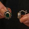 Gümüş Yeşil Çiçek Desenli Otantik Kadın Küpe