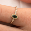 Bu göz alıcı yüzük, 925 ayar gümüşten üretilmiştir ve oval kesimli zümrüt taş ile zarif bir şekilde tasarlanmıştır.
