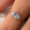 Akuamarin Taşlı Zümrüt Kesim Modern Tasarım 925 Ayar Gümüş Yüzük