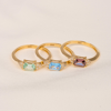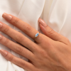 Bu göz alıcı yüzük, 925 ayar gümüşten üretilmiştir ve zümrüt şekilli akuamarin taş ile zarif bir şekilde tasarlanmıştır.