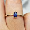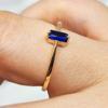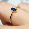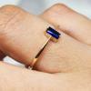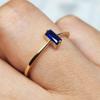 Bu göz alıcı yüzük, 925 ayar gümüşten üretilmiştir ve baget şekilli safir taş ile zarif bir şekilde tasarlanmıştır.