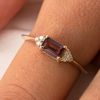 Bu göz alıcı yüzük, 925 ayar gümüşten üretilmiştir ve zümrüt şekilli kahverengi (smoky) taş ile zarif bir şekilde tasarlanmıştır.