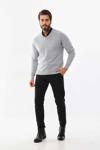 Günay Erkek V Yaka Yün Kazak 5000 Gri