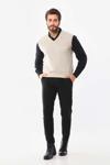 Günay Erkek V Yaka Yün Süveter 1000 Bej