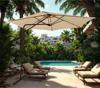 Gunbo Home 3 Mt Şemsiye + 4 Lü Ağırlık Seti Havuz Şemsiyesi Bidonlu, Bahçe Şemsiyesi, Teras Şemsiyesi Set Bej
