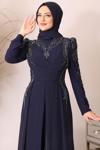 Güneş Boncuk İşlemeli Tesettür Tulum Lacivert