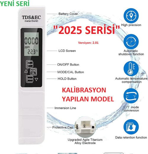 - Su kalitesini ölçmek için tasarlanmış, 2025 model Ec/ppm metre Tds ölçer ile suyunuzun kalitesini kolayca kontrol edin.