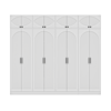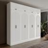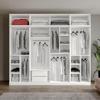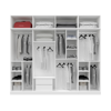 Gardırop, dayanıklı MDF malzemeden üretilmiş olup, kapaklar mat beyaz dişbudak desenli membran kaplamadır. Kulplar siyah metal renkte olup, modern bir kontrast oluşturur. Modelde çekmece bulunmamaktadır.