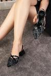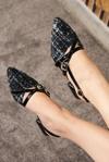 Nstil Günlük Kadın Ayakkabı Sivri Burun Abiye Kilim Dokuma Tüvit Kalın Kısa Topuk Üç Bant Tokalı Babet 027