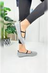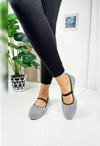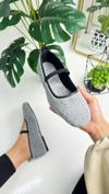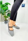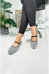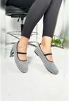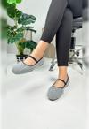 Nstil Günlük Kadın Babet Gümüş Taşlı Bantlı Tokalı Alçak Topuklu Yumuşak Rahat Ayakkabı K-128