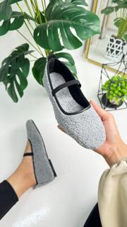Günlük Kadın Babet Peluş Lastik Detaylı Oval Burunlu Rahat Hafif Ayakkabı 373
