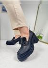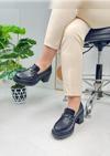 Nstil Günlük Kadın Loafer Tokalı Klasik Kalın Topuklu Tırtıklı Tabanlı Oval Burunlu Makosen Ayakkabı 76706