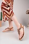 Nstil Günlük Kadın Parmak Arası Sandalet Düşmez Taşlı Lastikli Esnek Bant Fuspet Rahat Düz Topuk Taban 09