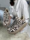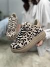 Nstil Günlük Kadın Sneaker Leopar Desenli Bağcıklı Oval Burun Yüksek Kalın Topuklu Spor Ayakkabı 313