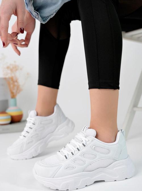 Nstil Günlük Kadın Spor Ayakkabı Bağcık Yüksek Kalın Taban Nefes Alan Oval Burun Rahat Hafif Sneaker 1001