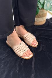 - Önü Açık, Küt burunlu, Bant ve metal detaylı Terlik
