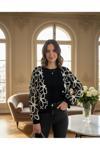 - Aplike detaylarıyla zenginleştirilmiş bu hırka, sofistike bir görünüm sunar ve göz alıcı bir stil yaratır.