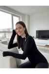 Günlük Moda Kadın Siyah Düğme Aksesuarlı Kaşkorse Bluz
