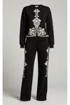 Günlük Moda Siyah Beyaz Nakışlı Detaylı Kışlık Lüks 2Li (Sweatshirt Ve Pantolon) Kadın Eşofman Takım