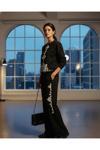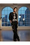 Günlük Moda Siyah Beyaz Nakışlı Detaylı Kışlık Lüks 2Li (Sweatshirt Ve Pantolon) Kadın Eşofman Takım