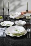 Nesrin koleksiyonunun yeşil desenli yemek seti, doğadan ilham alan tasarımıyla sofralarınıza huzur ve zarafet getiriyor. Her bir parça, floral detayların sadelikle buluştuğu özel bir işçiliğin yansıması.