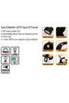 Katlanabilir Ayak Hareketli Kol Menzil 380m Güç: 190 Lümen Batarya Kapasitesi 4 Saat Dahili Şarj Edilebilir Lityum Pil 3.7V Kauçuk Kalama