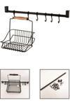 Retro Tasarımlı Kolay Montajlı Metal Sepetli Askı, Mutfak Askılı Seti, 6 Kancalı Sepet Siyah Askısı.