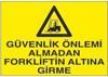 Güvenlik Önlemi Almadan Forkliftin Altına Girme Uyarı Levhası