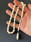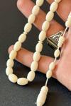 Deve Kemiği Boncuklar: Bu tesbih, en kaliteli deve kemiği boncuklarından yapılmıştır. Deve kemiği, dayanıklılığı ve sıcak bir doğal renge sahip olması nedeniyle tesbih yapımında geleneksel olarak tercih edilen bir malzemedir.