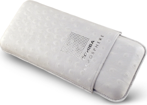 Cohiba Atmosphere Ostrich Gerçek Deri Puro Kılıfı Üçlü 64 Ring - Silver