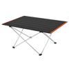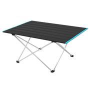 Siyah mat görünümlü alüminyumdan üretilen masa tablası, su geçirmez ve hava koşullarına dayanıklıdır. Temizliği oldukça kolaydır. Tablanın bağlantı kısmında kullanılan zincir formundaki özel plastik aksam, ip bağlantılı modellere kıyasla daha sağlam, kullanışlı ve kompakt bir tasarım sağlar. Masa iskeleti alüminyumdan yapılmış olup ABS plastik bağlantı parçalarıyla güçlendirilmiştir. Açılıp kapanması kolay mekanizması sayesinde hem pratik hem de fonksiyonel bir kullanım sunar.