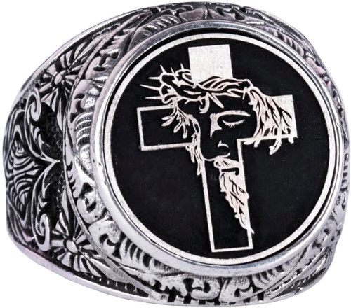 Haç Yüzüğü - Erkekler için 925 Ayar Gümüş Hristiyan Yüzüğü - İsa Yüzüğü