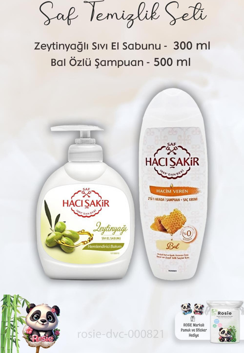 Hacı Şakir Zeytinyağlı Sıvı Sabun 300 ml, Ballı Şampuan 500 ml ve ROSIE